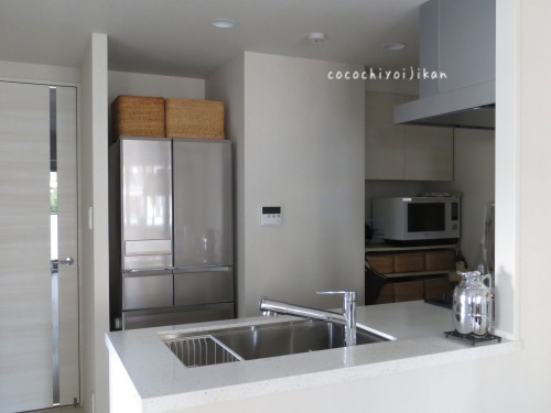 冷蔵庫上の収納に無印のカゴ じぶんらしい暮らしのつくり方